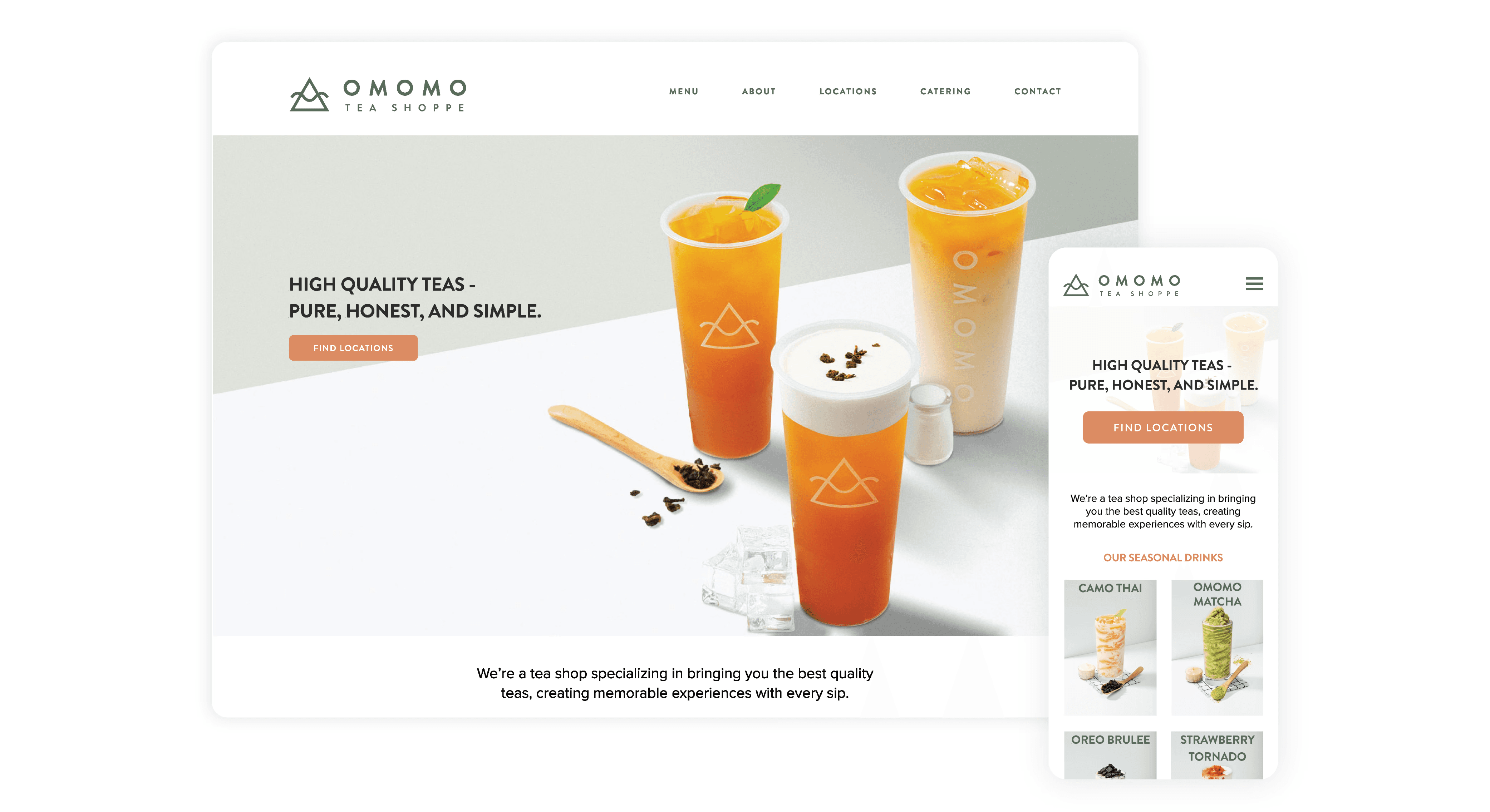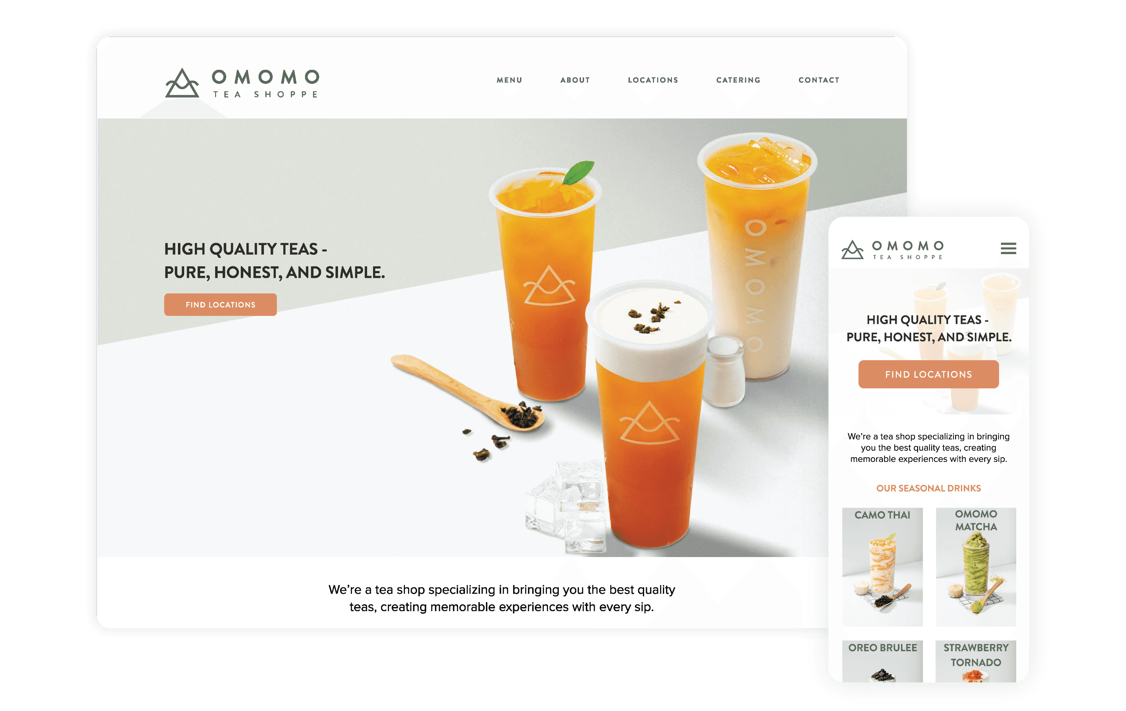 Research also revealed that users value loyalty programs, especially when signing up is quick and minimal effort. To acknowledge this desire, we incorporated a simple rewards sign-up both on the homepage and in the footer to encourage engagement from frequent visitors. One of the primary challenges involved optimizing the experience for mobile. Omomo’s menu is extensive and highly visual, with photos for each drink. This was an element users appreciate but one that requires careful organization to avoid excessive scrolling. We addressed this by thoughtfully restructuring content to balance visual appeal with efficiency.